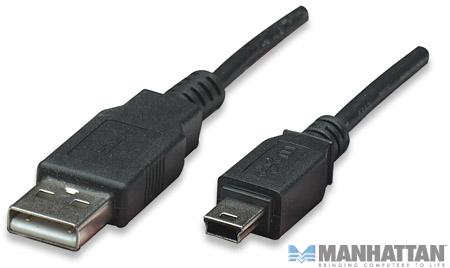 Cable PC MANHATTAN, 1,8 m, USB A, Mini-USB B, Macho/Macho, Negro