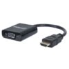 Conecta fácilmente una fuente HDMI a una pantalla VGA. El convertidor de HDMI a VGA de Manhattan ayuda a establecer una conexión rápida y conveniente entre la nuevas computadoras de escritorio y notebooks equipadas con HDMI y otras fuentes de medios con monitores VGA, proyectores y otra pantallas. El convertidor de HDMI a VGA de Manhattan es fácil y rápido de instalar y no requiere una configuración o instalación complicada para ayudar a extender la vida y aprovechar la inversión realizada en pantallas VGA, proyectores y otros equipos. Esta solución rentable y de bajo consumo permite a los usuarios realizar una transición de la resolución y los colores profundos de HDMI sin la necesidad de actualizar gastando en nuevos y costosos monitores y proyectores. Su diseño «todo en uno» ayuda a integrar una solución integrada y compacta que elimina cables innecesarios, enredos y mantiene las instalaciones y los lugares de trabajo en orden.