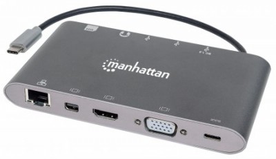 Estación Docking USB-C SuperVelocidad 7 en 1 MANHATTAN SuperVelocidad 7 en 1, Gris, USB C, USB C, USB3.0/HDMI/VGA, Macho/hembra
