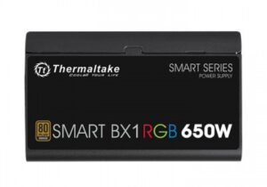 Fuente de poder THERMALTAKE SMART BX1 750W (PS-SPR-0750NHFABU-1) Watts: 750W; tipo: Intel ATX 12v 2.3; Conectores: PCI-E 6+2 Pin x2, ATX 12V (4+4 Pin) x 1, SATA (4 Pin) x4, Peripheral (4 Pin) x 4, FDD (4 Pin) x 1; Eficiencia: 82-86%; Enfriamiento: Abanico 120 mm con 1800 RPM; Color: negro; Dimensiones: 86mm x 150mm x 140mm