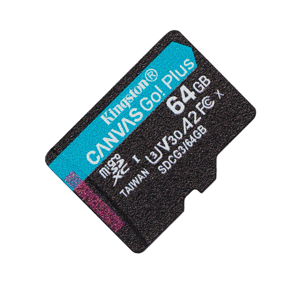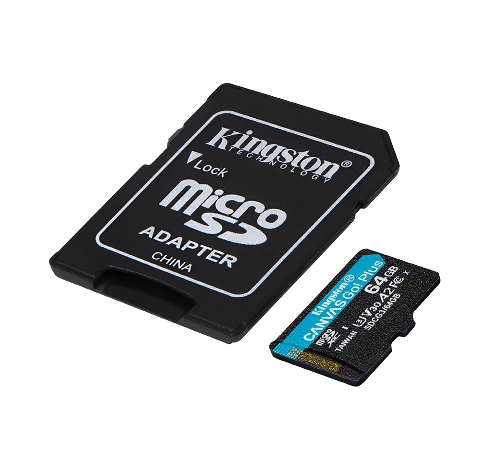 Memoria Kingston Micro SDXC Canvas Go Plus 64GB UHS-I U3 V30 A2 Clase 10 C/Adaptador