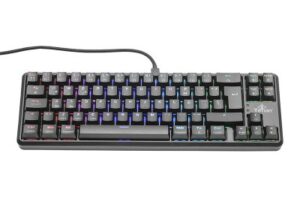 Teclado Gaming Keyboard Akil, Red Switch YTM-28210B. teclado mecánico super compacto para gaming 68 teclas con tecnología Bluethoot® y switches azul, diseño ergonómico, 68 teclas mecánicas de interruptor azul dinámicas y receptivas con 50 millones de pulsaciones de tecla, color de luz de fondo RGB en cada tecla individual y efectos predefinidos. Este teclado es compatible con Windows 10, Windows 8 and Windows 7.