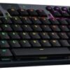 TECLADO MECÁNICO INALÁMBRICO RGB Logitech G915 TKL. 920-009495. Un gran avance en diseño e ingeniería, ahora en combinaciones de colores en blanco y negro. G915 TKL incorpora tecnología inalámbrica LIGHTSPEED de calidad profesional, RGB LIGHTSYNC avanzada e interruptores mecánicos de perfil bajo y alto desempeño. Creado meticulosamente con materiales premium, el G915 TKL tiene un sofisticado diseño de incomparable belleza, resistencia y desempeño. Y ahora con un diseño aún más compacto. G915 TKL. Juega en la siguiente dimensión. Dos años de de garantía de hardware limitada. Color negro.