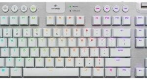 TECLADO MECÁNICO INALÁMBRICO RGB Logitech G915 TKL. 920-009495. Un gran avance en diseño e ingeniería, ahora en combinaciones de colores en blanco y negro. G915 TKL incorpora tecnología inalámbrica LIGHTSPEED de calidad profesional, RGB LIGHTSYNC avanzada e interruptores mecánicos de perfil bajo y alto desempeño. Creado meticulosamente con materiales premium, el G915 TKL tiene un sofisticado diseño de incomparable belleza, resistencia y desempeño. Y ahora con un diseño aún más compacto. G915 TKL. Juega en la siguiente dimensión. Dos años de de garantía de hardware limitada. Color negro.